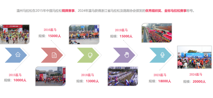 3、4、5月,由温马协会组织,温马团队、主流媒体、智库专家、商家代表等共同参与,多场关于“十年温马 焕新出发”的采访、研讨、论证密集上演。期间,正值国家体育总局发布“促进体消费和赛事经济试单城市名单”,温州荣列其中。乘此东风,打造温州马拉松赛事经济“13579”生态培育思路也快速成型: