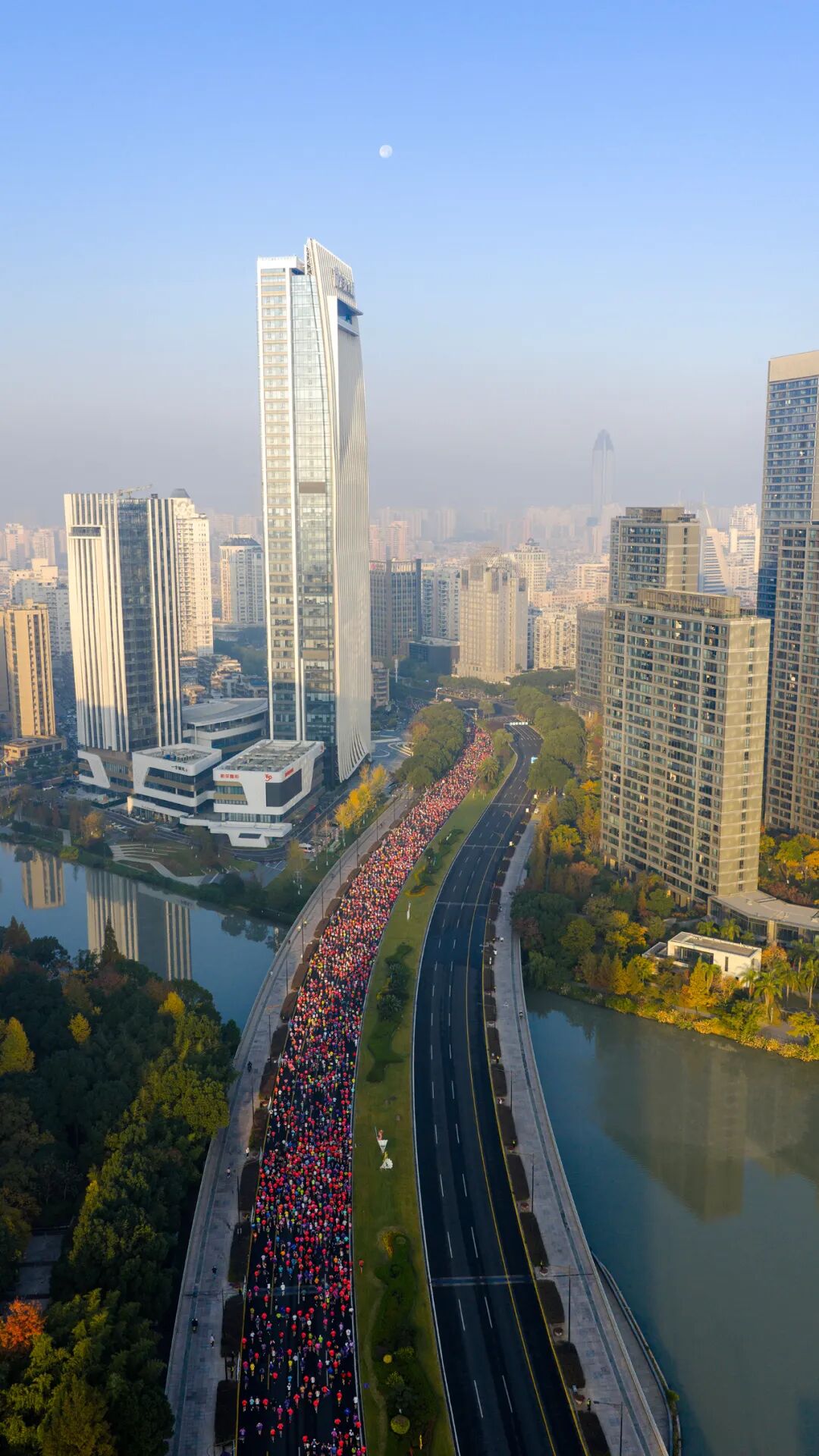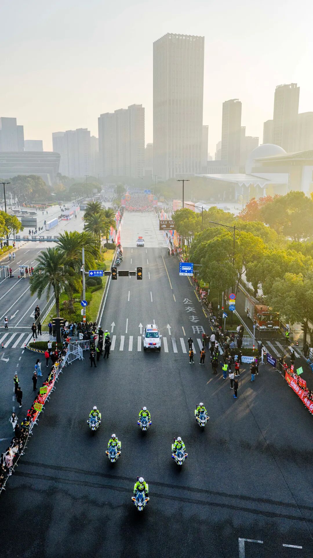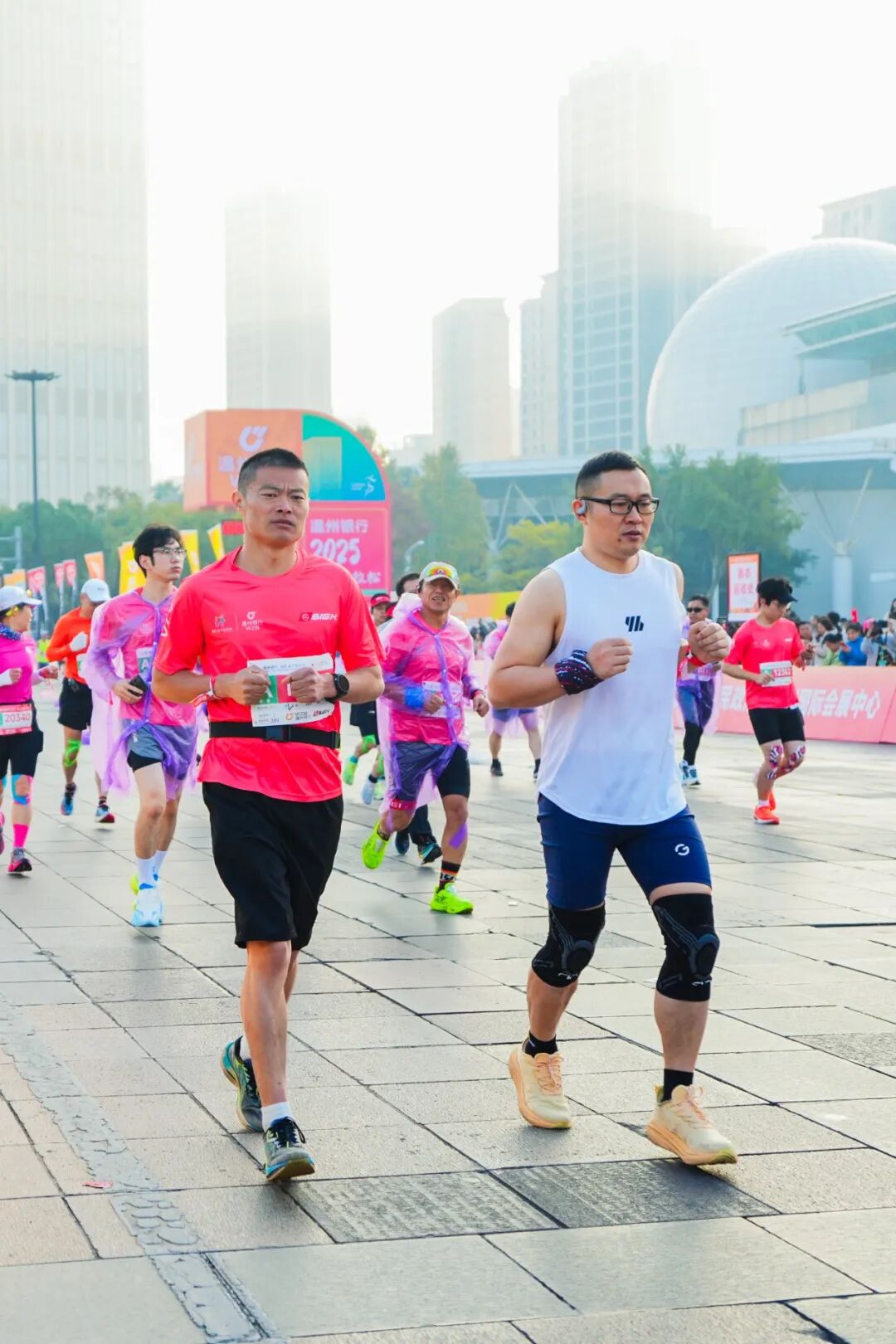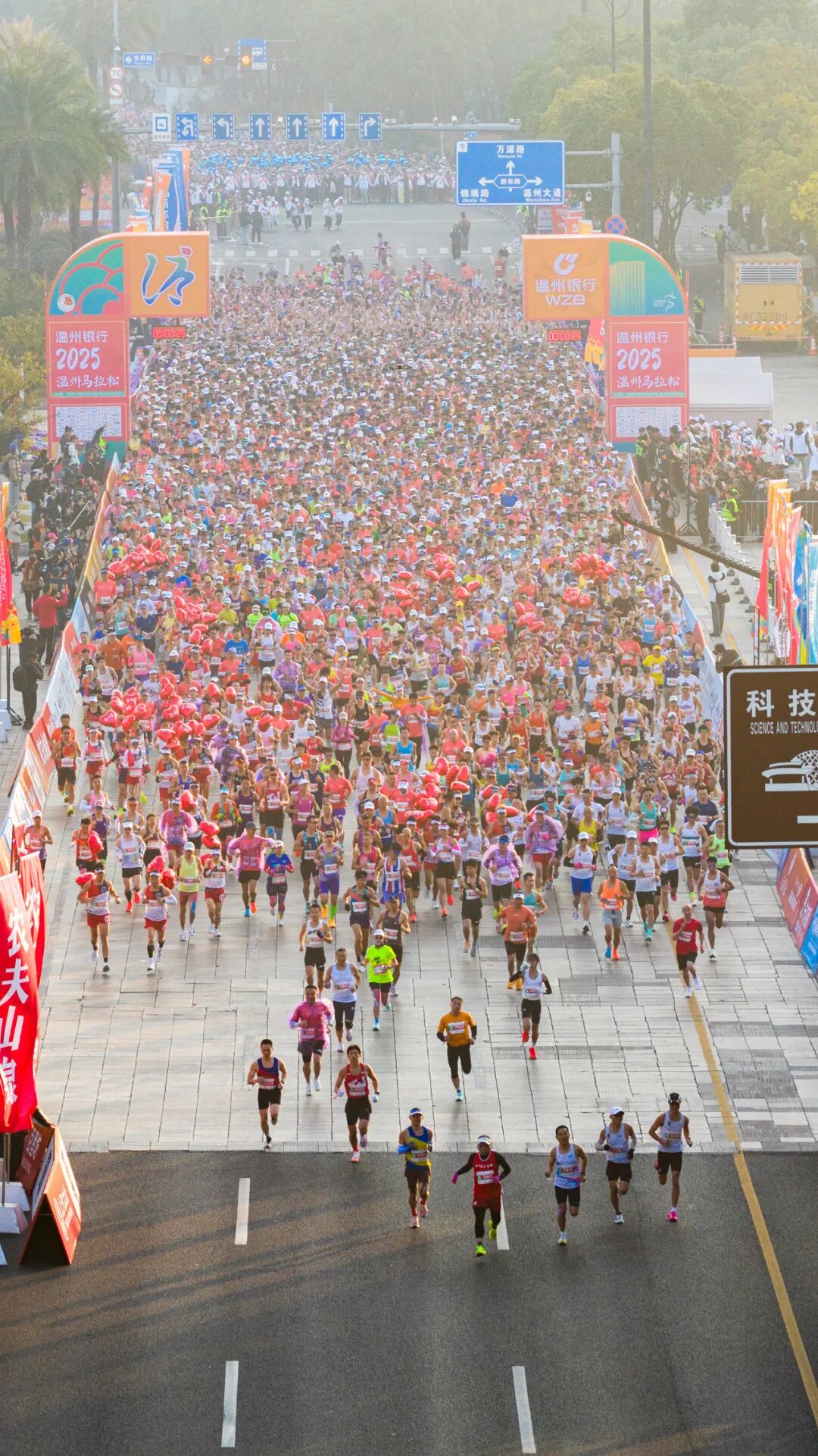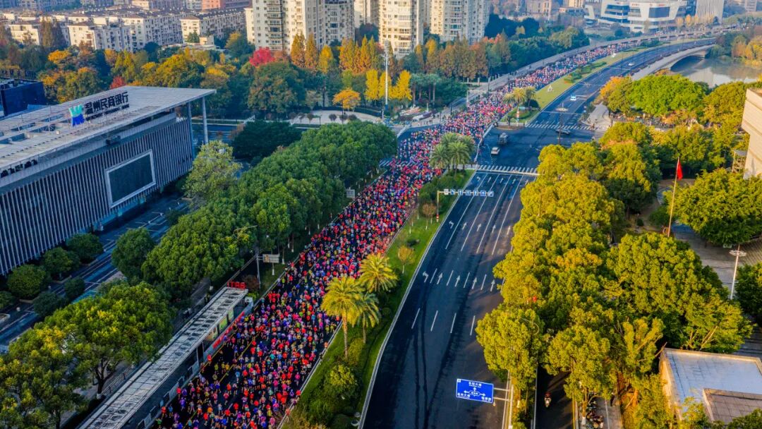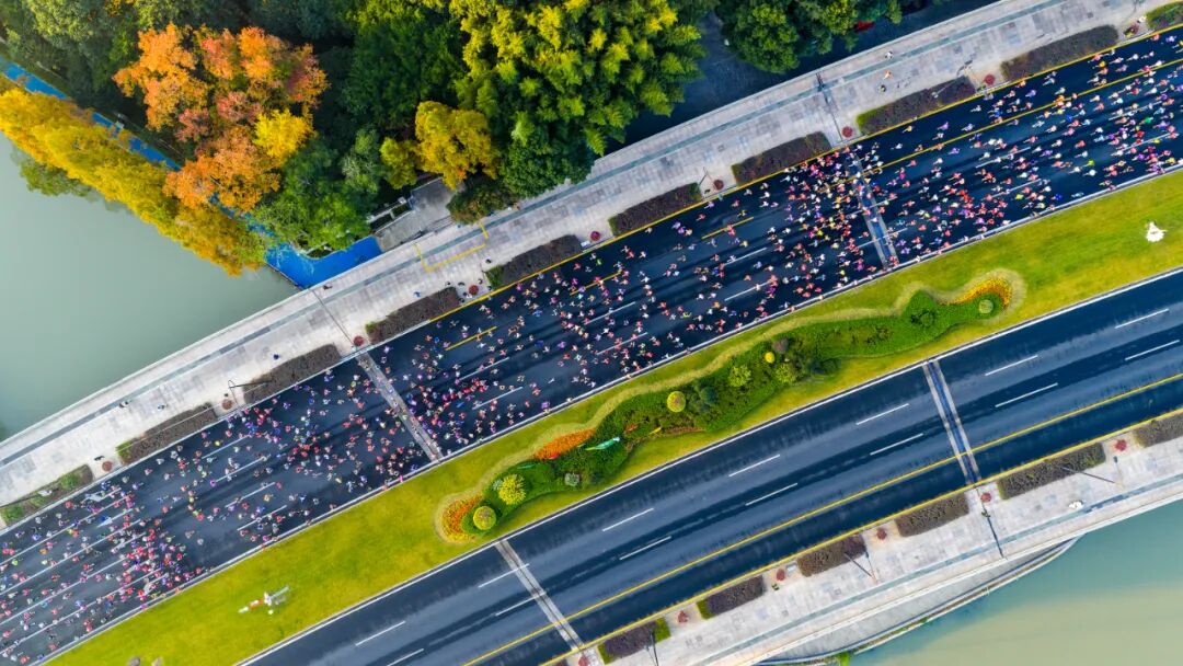 随着发令枪响,选手们从世纪广场出发,奋勇向前。赛道沿线生态环境优良,空气清新宜人,既最大程度减少了选手奔跑中的能量损耗,为冲击个人最佳成绩提供了坚实保障,也让跑者在酣畅奔跑中沉浸式感受温州的城市风貌与人文气息。